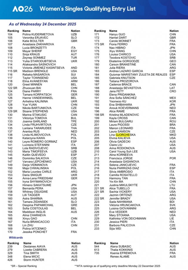Ѓорческа се најде на листата со учеснички во квалификациите, а наскоро ќе дознае против кого ќе го почне патешествието во обид да избори прво учество во главниот дел од турнирот.