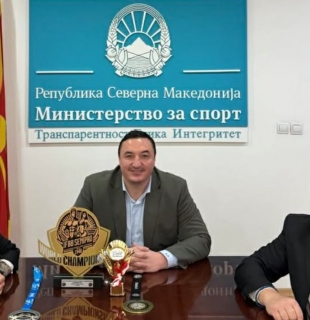 Министерот Ристовски оствари средба со светската шампионка во боди билдинг, Катерина Попева