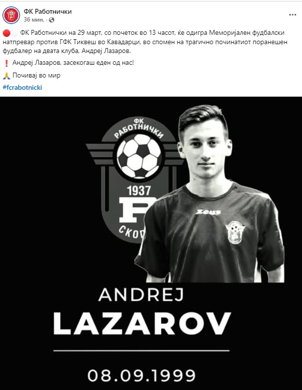 Лазаров во моментот на трагедијата беше член на Шкупи, но во кариерата исто така играше и за екипите на Тиквеш и Работнички кои сега одлучија да му оддадат посебна чест така што ќе одиграат пријателски натпревар.