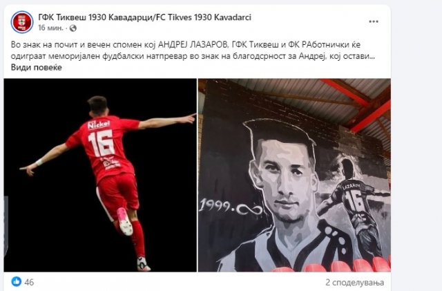 Работнички и Тиквеш ќе играат во чест на Андреј Лазаров (ФОТО)