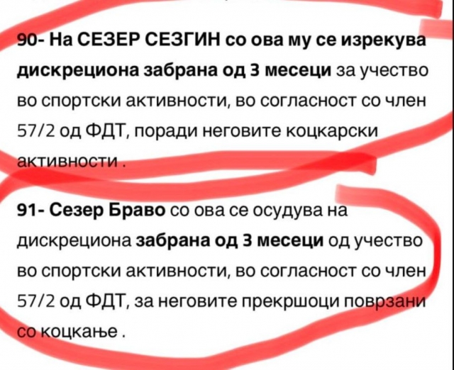 Одлуката, донесена согласно член 57 од дисциплинските прописи, предвидува тримесечна суспензија и отвора сериозна дисциплинска постапка против нив. Но, ова е само дел од приказната што фрла темна сенка врз работењето на клубот од Кавадарци.