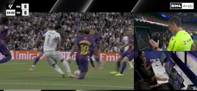 Во втората минута на Ел Класико дуелот меѓу Реал Мадрид и Барселона беше досуден пенал за домаќините, но потоа судијата со помош на ВАР ја промени одлуката.