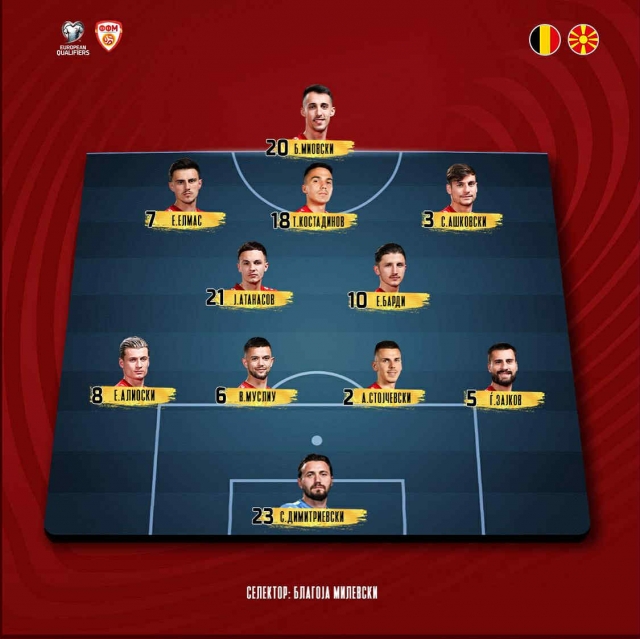Милевски не може да смета на Бојан Илиевски, па затоа се реши за формација 3-5-2 и на теренот ќе излезат Димитриевски, Ашковски, Стојчевски, Зајков, Муслиу, Алиоски, Барди, Атанасов, Костадинов, Елмас и Миовски.