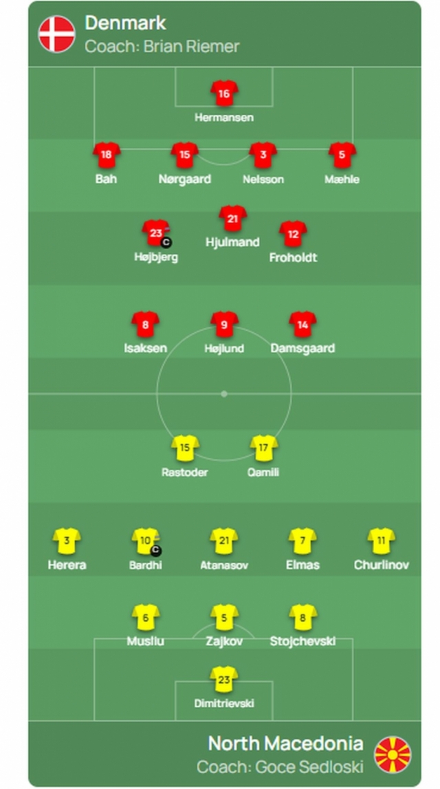 Хермансен, Бах, Норгард, Нелсон, Меле, Хојберг, Хјулманд, Дамсгард, Исаксен, Фрокхолт, Хојлунд