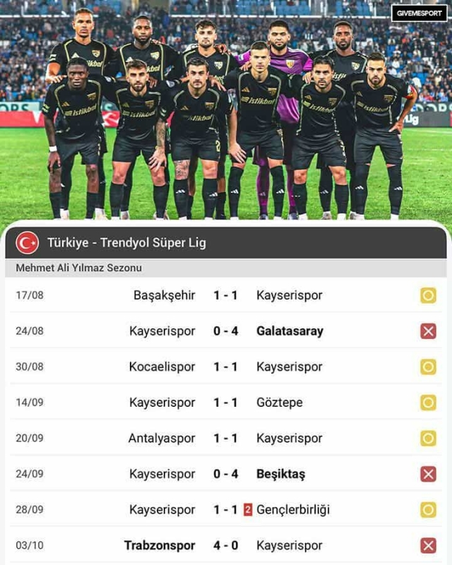 Инаку, Кајзериспор е претпоследен на табелата со пет бода.