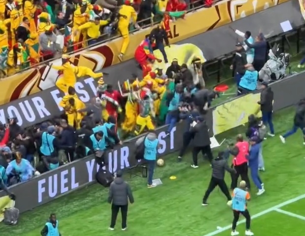 Главниот судија поништи гол на Сенегалците, па досуди пенал за Мароко, а тоа предизвика револт и хаос на трибините, откако дел од навивачите се симнаа и се тепаа со редарите, а летаа и столици.