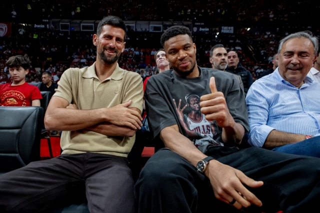 Откако претходно го гледаше дуелот Црвена Ѕвезда Белград - Реал Мадрид од првиот ред, рамо до рамо со Лука Дончиќ, четвртиот светски рекет повторно се најде на трибините на една европска кошаркарска арена. Покрај него и Адетокумпо е првиот човек на Евролига, Дејан Бодирога, уште една спортска легенда.
