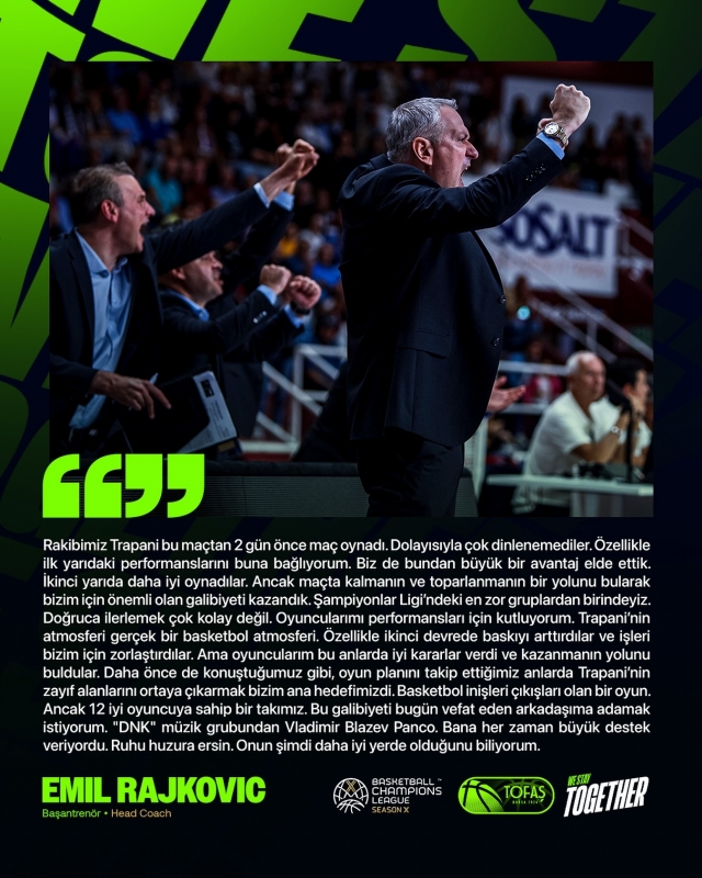 Откако во воведниот круг го совлада Бнеи Херцлија од Израел, тимот од Бурса како гостин го совлада италијанскиот Трапани со 91-89. Турската екипа одигра извонредно прво полувреме во кое постигна 53 поени и на голем одмор замина со +17, но малку недостасуваше да ја загуби високата предност. На стартот на третиот период, Тофаш водеше и со 21 разлика (57-36), но Трапани во вториот дел направи голем пресврт и мачку недостасуваше да ги освои двата бода. Во последната четвртина на само еден поен негатива и тоа во два наврата, но серијата од 5-0 на гостите на три минути пред крајот, по која отидоа на 84-77, се покажа клучна за триумфот.