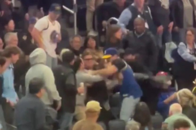 Кошаркарите на Голден Стејт Вориорс ноќеска на домашен терен го совладаа Милвоки Бакс (120-113), но натпреварот во „Чејс Центар“ остана во сенка на брутална тепачка која изби на трибините.