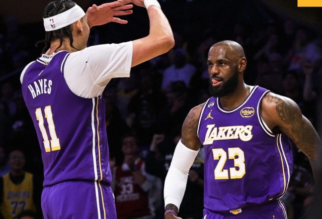 Ѕвездата на Лос Анџелес Лејкерс испиша историја во победата на својот тим од 124-104 над Далас Маверикс, запишувајќи 28 поени, 12 асистенции и 10 скока. На 41 година и 44 дена, Џејмс го сруши рекордот на Карл Мелоун, кој изнесуваше 40 години и 127 дена, додека исто така беше член на Лејкерс. Мелоун го држеше рекордот од 28 ноември 2003 година, кога забележа 10 поени, 11 скока и 10 асистенции за време на неговата последна НБА сезона.
