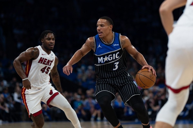 „Магичните“, иако настапија без повредениот Франц Вагнер, направија голем подвиг и го исфрлија Мајами (117-108). Тимот доби неочекуван лидер во Дезмонд Бејн, кој блесна со 37 поени, а поддршка му дадоа Џејлен Сагс со 20 и Паоло Банкеро, кој по враќањето од повреда реализираше 18 поени. Кај Мајами, најистакнати беа Тајлер Хиро со 20 поени, како и Бем Адебајо и Ендрју Вигинс со по 19.
